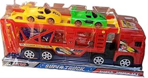 Double decker Trailer Truck | Car Carrier Truck with 4 Cars Included Toy for Kids (Random color)