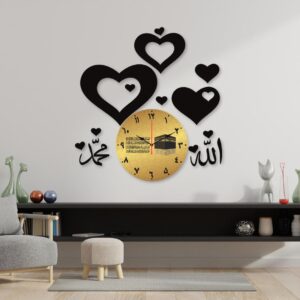 Allah Mohammad Clock Hearts Wall Clock /Decorative Unique Wall D?cor Clock For Home Decor Living Room And Offices