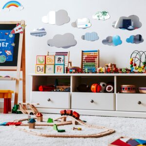 8 Pcs Acrylic Cloud Shape Mirror Wall Art Decor Cloud Mirror Stickers Decals for Kids Girls Bedroom Bathroom Playroom silver