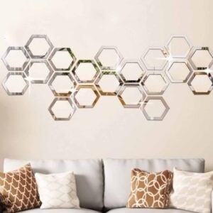 Hexagon Shape Acrylic Mirror Wall Stickers (18 Pc Set)