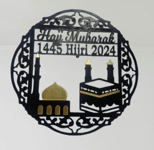 Hujj Mubarak Wall hanging decorations MDF wood + golden acrylic mirror material Black color