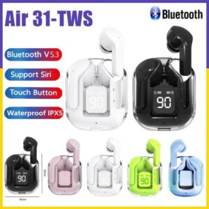 Air31 Digital Display Case Wireless Air 31 Crystal Transparent Body Gaming Earbuds (WithOut Pouch)
