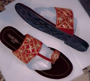 Kolhapuri Slipper Design No. 25-78 ? Traditional Red & Dark Maroon Handcrafted Footwear (With Box )
