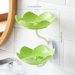 Multicolor Lotus Flower Soap Holder, Double Layer Wall-Mounted, No-Drill with Drainage, Quick-Dry Plastic Bathroom Organizer for Soap Storage, Soap Holder for Bathroom ( Random Color ) - 01 Stand