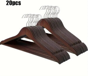 Premium Wooden Hangers ? Pack of 20 Durable Slim Hangers with Pants Bar ? Smooth Finish for Closet Organization (Brown & Light Wood) (With Box)