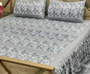 Luxury 3-Piece Frill Patchwork Double Bed Bedsheet Set ? Soft Cotton Blend, Multicolor, Includes 2 Pillow Covers, Elegant Frilled Edges