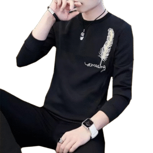 New Collection: Men's Stylish Print Full Sleeves T-Shirt - Premium Quality & Fashionable Design for a Smart Look | Black Leaf Print T-Shirt