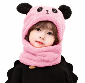 Beanie Wool Cap With Neck Warmer Attached. KIDS WOOL CAP Cartoon Panda Baby (random color)