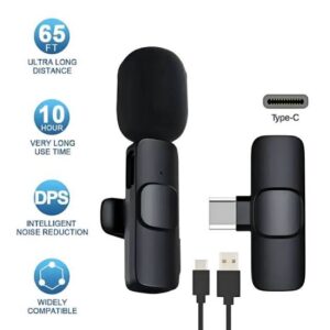 WIRELESS MIC K9 Dual Microphone Mic Plug & Play USB Type C Plug Wireless Lavalier Microphone