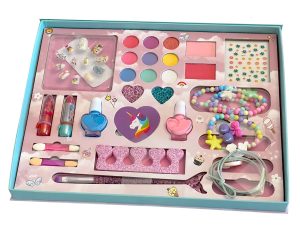 Beauty Makeup Kit for Doll Girls Children's Cosmetics Makeup Eyeshadow Palette Nail Polish Blush Carrying Box Cosmetic Bag Set