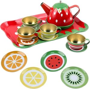 Fruit Theme Tea Party Play Set ? 14PCS Colorful Pretend Tea Set for Kids with Cups, Teapot, Saucers & Accessories ? Fun Role Play Toy for Toddlers & Girls ? Ideal for Birthday Gifts & Playdates