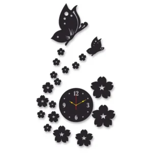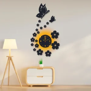 3d wall clock | Wall Clock With Wooden Butterflies , Flowers with light