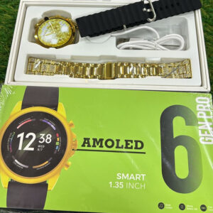 GEN PRO 6 AMOLED Smartwatch ? Display with Dual Straps (Silicone + Golden Metal Strap)