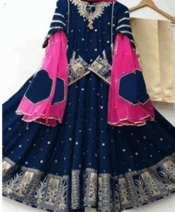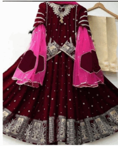 3pcs Neck,Border Heavy Embroidery With Two Colours Dupatta
