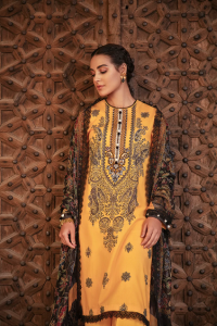 3 Piece Heavy Embroidered With Front And Back Pearls Attached Gown With Maxi Trouser
