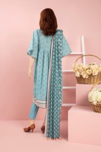 Uswa Zia 3 Piece Printed Swiss Lawn Suit ? Blue, Stiched Suit (Standard Size)