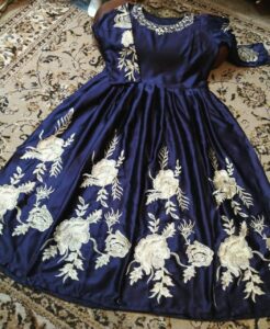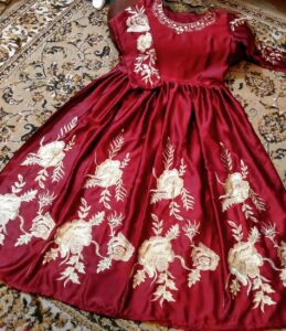 3 Pc Embroidered Silk Maxi, Trouser & Dupatta