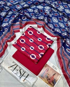 ? ZESH ? 3 PieceUnstitched Suit ZESH SUMMAER LAWN COLLECTION 2025