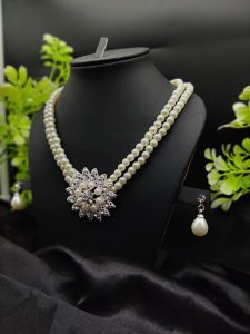 Imported Graceful Radiance Pearl Necklace Set with Exquisite Floral Pendant ?? | Artificial Jewellery For Girls & Women