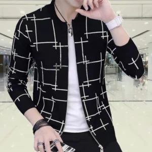 Fashionable & Premium Quality - Stay Stylish with a Black Lining Printed Zipper Jacket, Featuring Trendy Design and Wash and Wear