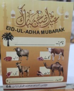 Bakra Eid Eid-ul-Adha Mubarak Adhesive Printed Stickers 5 Inches for Meat Distribution (random color)