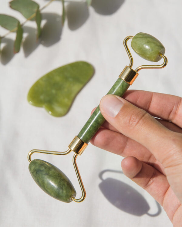 Made from natural jade gemstone, this facial roller set works to help rejuvenate the skin and help reduce the appearance of unwanted fine lines