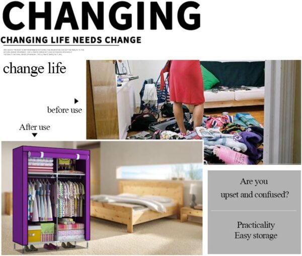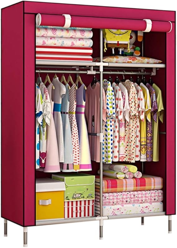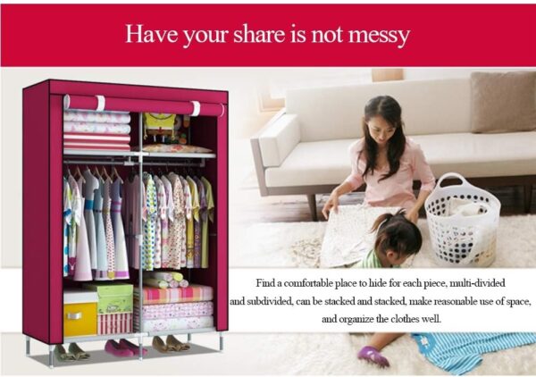 Organize your space efficiently with this Portable 2-Door Fabric Wardrobe. Designed with durable stainless steel rods and high-quality fabric, this large-sized storage cabinet offers ample space for your clothing and accessories. Its lightweight and foldable design make it easy to assemble and relocate, perfect for homes, dormitories, or temporary accommodations.