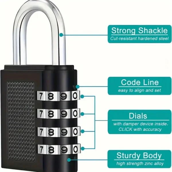 SET YOUR OWN COMBINATION: The 4 number combination lock takes 10 times longer to crack than a 3 digit lock. You can set your own combination with 10000 unique choices that you know the combination padlocks are more reliable and safer.