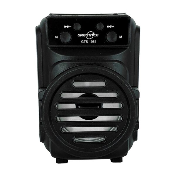 The speaker supports a variety of playback options including Bluetooth connectivity, USB drive, TF card, and FM radio, offering flexibility for every listener. Its lightweight design, sturdy build, and easy-carry handle make it ideal for on-the-go entertainment, while the intuitive control panel ensures effortless operation.