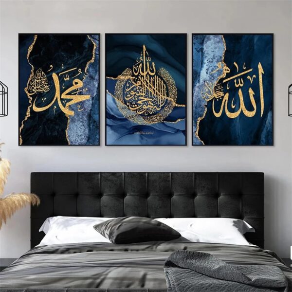 Be the first to review “3 Marble Blue Islamic Wall Art Modern Arabic Calligraphy- Islamic Wall Decor”