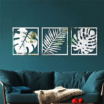 3 Pc Set Hollow Photo Frame Palm Leaves Acrylic Mirror Wall Stickers (Golden)