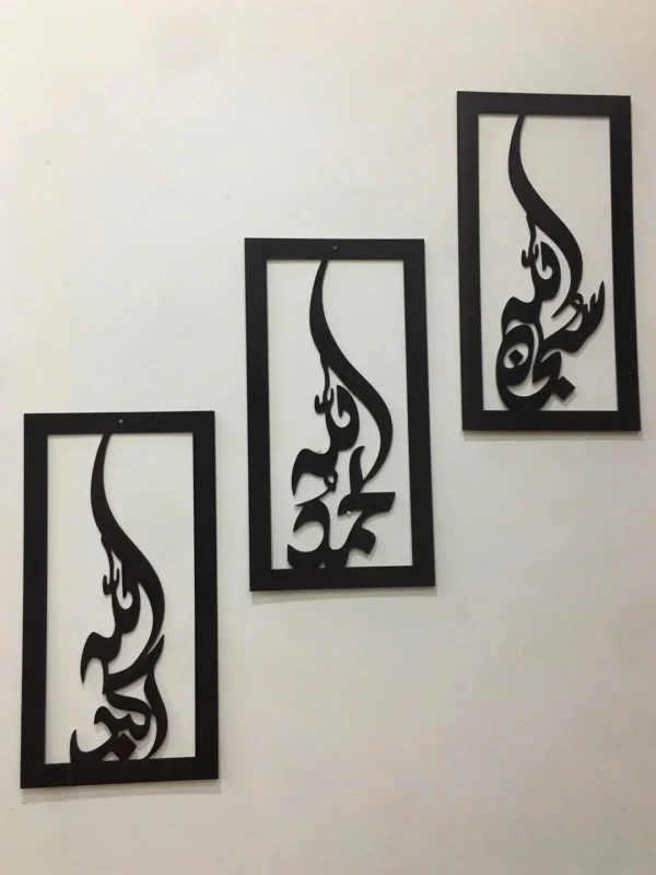 (3 pcs set ) 3D Wooden wall Tasbeeh-e-Fatima calligraphy / Wooden Wall Decoration For Home I Decoration