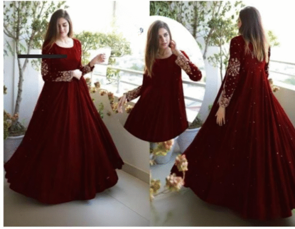 Heavy Embroidered With Front And Back Pearls Attached Gown With Maxi Trouser 3Piece