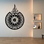 3D Islamic Wooden Wall Clock Inna Allaha ‘ala Kulli Shay’in Qadeer ? Elegant Islamic Wall Decor Made from 3mm Lasani Wood ? Premium Laser Cut Design ? Perfect for Home, Mosque, or Gift