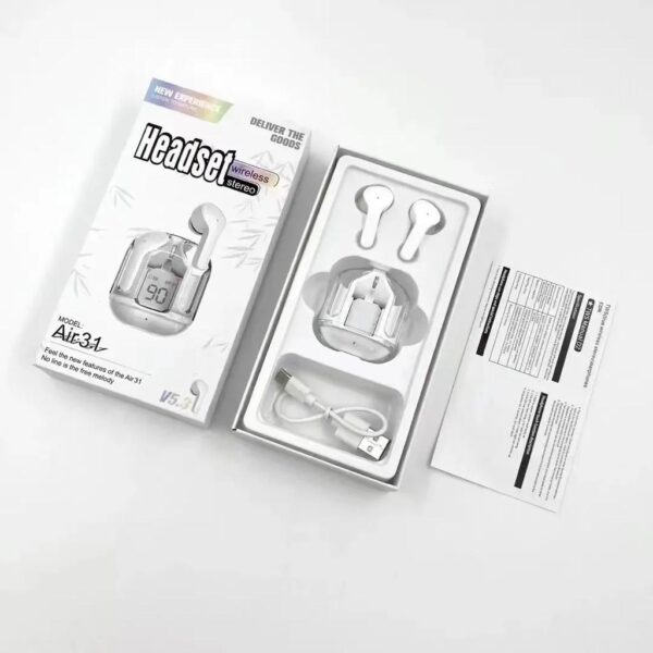Air31 Earbuds Wireless Crystal Transparent body – Without Silicone Pouch ( random color )
