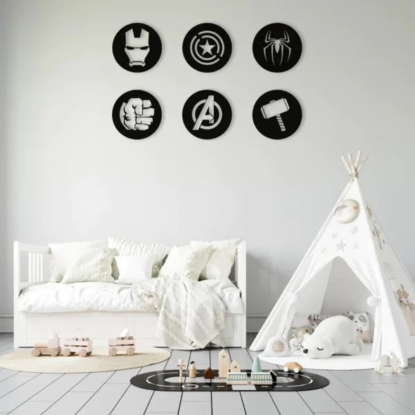 Kid room decoration Superhero logo Wall stickers Thor, hulk, spider man, iron man 6pec set 7 inch size each logo Wooden MDF material