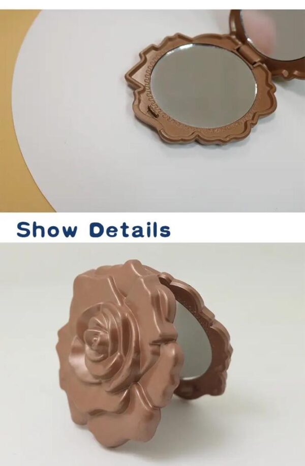 Beautiful Rose Shaped wooden colours Personalized Vintage Pocket Portable Small Size Plastic Makeup Cosmetic Mirror (pack of 2 )