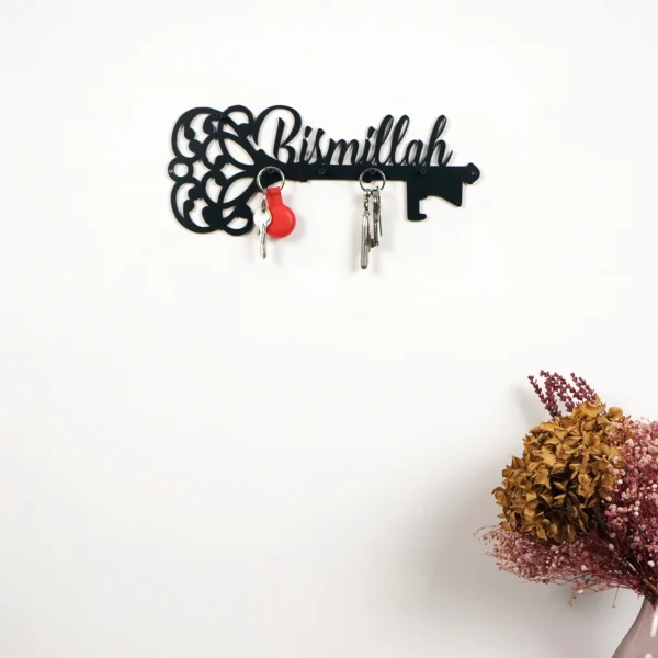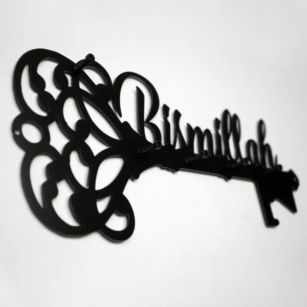 This piece elegantly marries?Islamic calligraphy?with practicality, embodying the phrase ‘In the name of Allah’ to bless your comings and goings. An essential addition to?Islamic home decor, it not only organizes your space but also serves as a constant reminder of faith, making it a perfect?Muslim gift?and a meaningful piece of?Islamic art?and?Quran wall art.