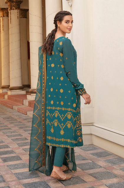 DYED EMBROIDERED LAWN FRONT & SLEEVES, PASTE PRINTED BACK