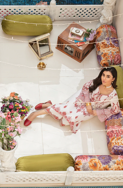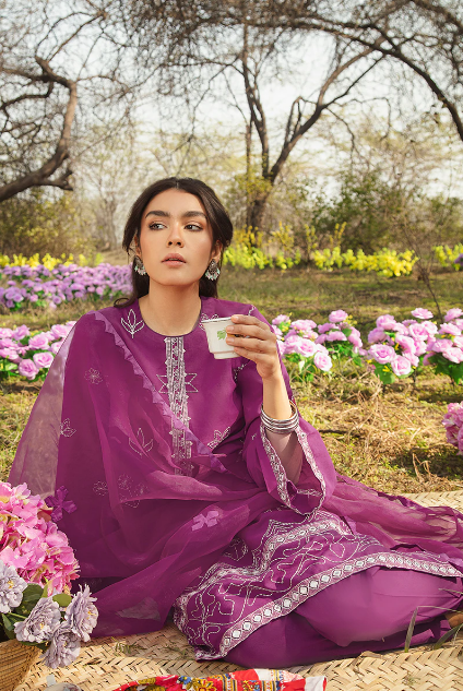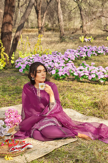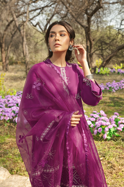 SHIRT DYED EMBROIDERED LAWN FRONT & SLEEVES, PASTE PRINTED BACK