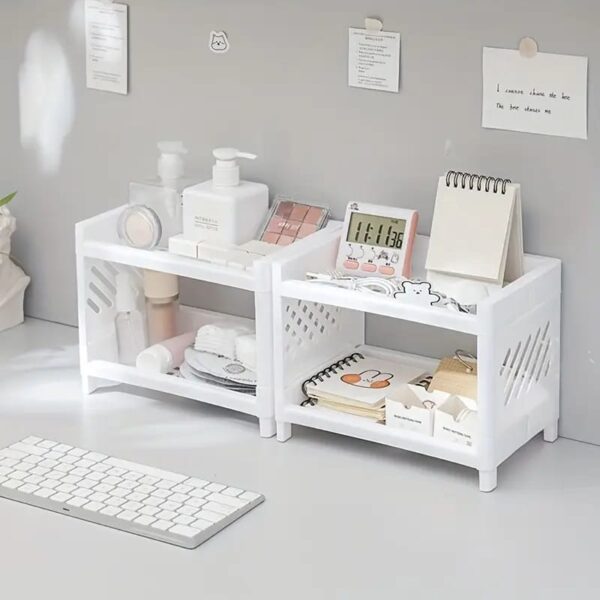Suitable for any room, this storage shelf is perfect for desktop organization and can also be used as an ideal bathroom storage shelf.
