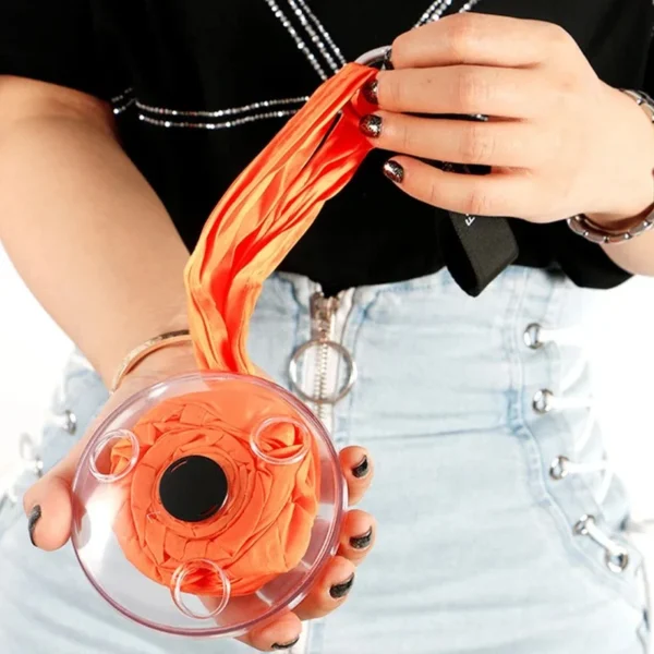 Simple and easy to use: just pull the loop to have a storage of 5 liters space, and rotate it to the round housing to minimize space when not using it.