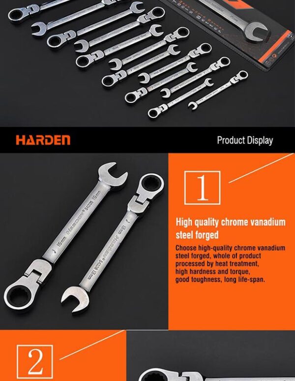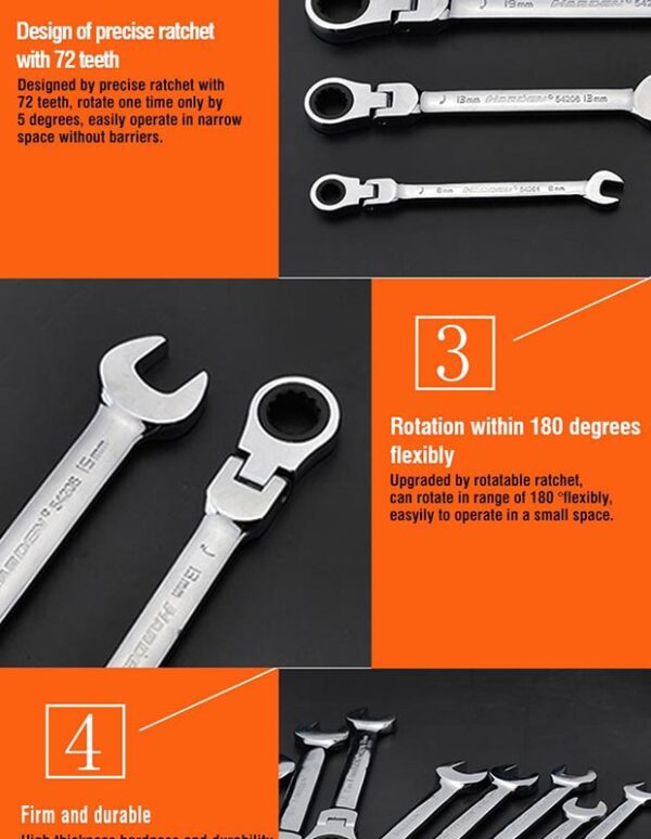 Fixed Ratchet Combination Wrench *Forged from highest Chrome Vanadium steel,hardened, tempered *Bright chrome plated for corrosion protection *72 Tooth ratchet head or easy access in confined spaces