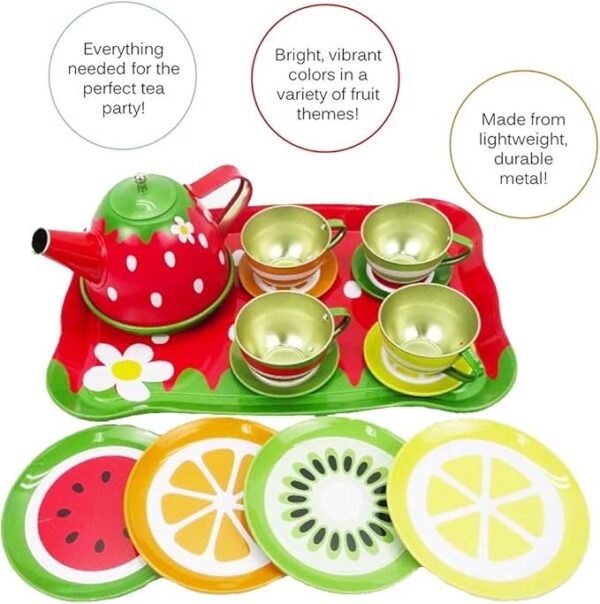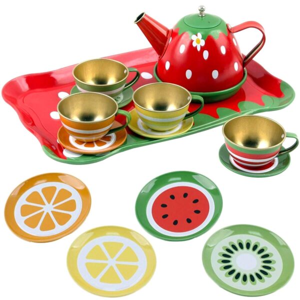 Fruit Theme Tea Party Play Set ? 14PCS Colorful Pretend Tea Set for Kids with Cups, Teapot, Saucers & Accessories ? Fun Role Play Toy for Toddlers & Girls ? Ideal for Birthday Gifts & Playdates