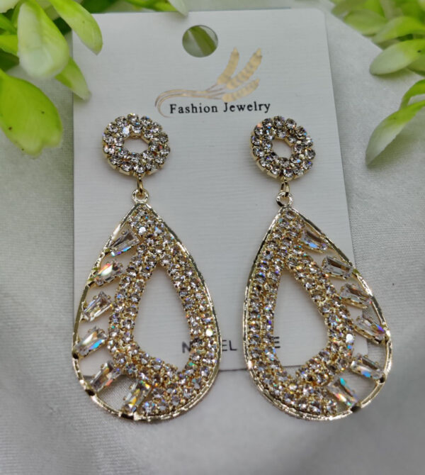 Imported Sparkling Teardrop Crystal Earrings ? Elegant Statement Jewelry – Luxurious Gold Finish | Best Quality Artificial Earrings For Girls & Women