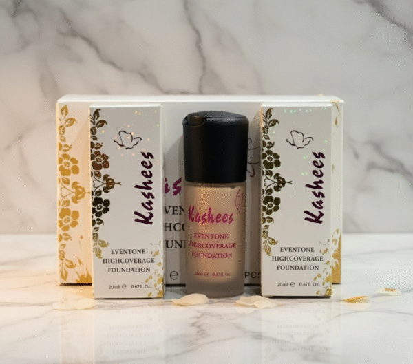 DescriptionKashees Eventone High Coverage Liquid Foundation 20ml | Smooth Matte Finish, Long-Lasting, Full Coverage Base Makeup (Ivory Shade)Achieve a flawless and radiant look with Kashees Eventone High Coverage Liquid Foundation (20ml). Designed to provide full coverage, this foundation effectively conceals blemishes, dark spots, and uneven skin tone, leaving your skin with a smooth, natural matte finish. Its lightweight yet long-lasting formula ensures comfortable wear throughout the day without feeling heavy. Suitable for all skin types, this foundation blends seamlessly for a professional-quality makeup look. Compact and travel-friendly, it?s perfect for daily use or special occasions.Key Features:Product Type: High Coverage Liquid FoundationBrand: Kashees EventoneNet Weight: 20mlShade IvoryProvides full coverage for blemishes, dark spots & uneven toneSmooth matte finish for a natural lookLong-lasting and lightweight formulaSuitable for all skin typesCompact and travel-friendly packagingMade in China