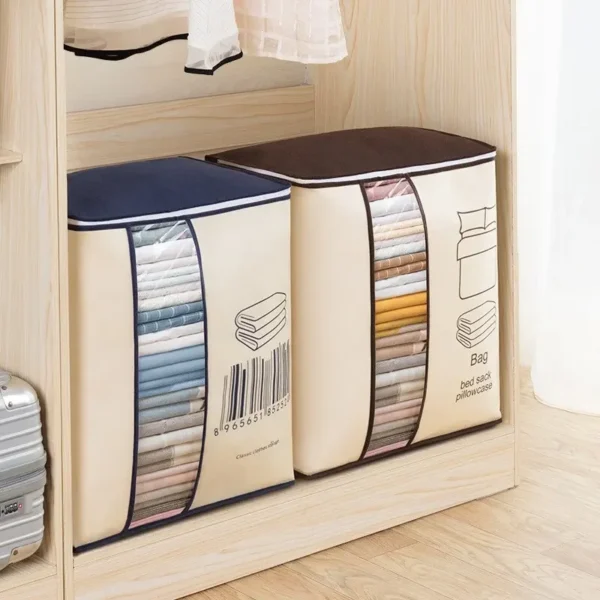 Description:? Non-Woven Fabric Material :Made of durable and easy-to-clean non-woven fabric, this storage bag is perfect for long-lasting use.? Three-Dimensional Type :The three-dimensional type of this storage bag provides ample space to store your items without taking up too much room.? Eco-Friendly Feature :This storage bag is eco-friendly, making it a great choice for those who want to reduce their carbon footprint.? Multi-Purpose Use :This storage bag can be used for a variety of purposes, including storing quilts, household items, and more.? Non-Woven Fabric Material :Made of durable and easy-to-clean non-woven fabric, this storage bag is perfect for long-lasting use.? Three-Dimensional Type :The three-dimensional type of this storage bag allows for maximum storage space and efficient organization.? Multi-Purpose Use :This storage bag can be used for a variety of household items, making it a versatile addition to any home.? Eco-Friendly Feature :With its eco-friendly feature, this storage bag is a great choice for those who want to reduce their environmental impact.? Transparent Visual Window :The transparent visual window allows you to easily see what’s inside the storage bag, making it convenient to find and access your items.? Non-Woven Fabrics :Made of durable non-woven fabrics, this storage bag is strong and can withstand wear and tear, ensuring long-lasting use.? Three-dimensional Type :The three-dimensional type of this storage bag provides ample space to store your items, making it perfect for storing quilts, blankets, and other household items.? Eco-Friendly:This storage bag is eco-friendly, making it a great choice for those who want to reduce their environmental impact while still enjoying the benefits of a high-quality storage solution.Feature:?Dust and ash prevention?: Easy to store blankets and clothing, keeping them clean?Tidy storage?Convenient and aesthetically pleasing to store?Multi functional and applicable?Capable of storing blankets, cotton jackets, children’s toys, sweaters, etc original picture and video