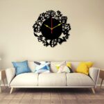 Love Birds with Umbrella Standing On Tree Branch Cloud Raining Wooden Wall Clock