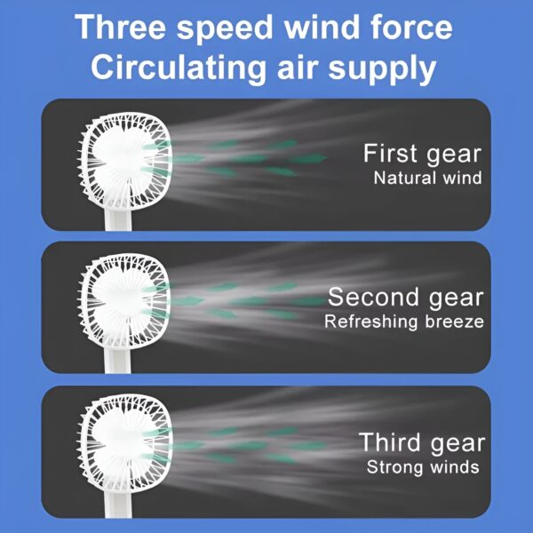 ?Three levels of adjustable wind speed? There are three levels of wind speed, Low, medium and strong, with speed light indicator Green, yellow, and red .one-button adjustment, easy switching, from cool to strong, to meet your needs in different temperatures, and bid farewell to the embarrassment of sweating.