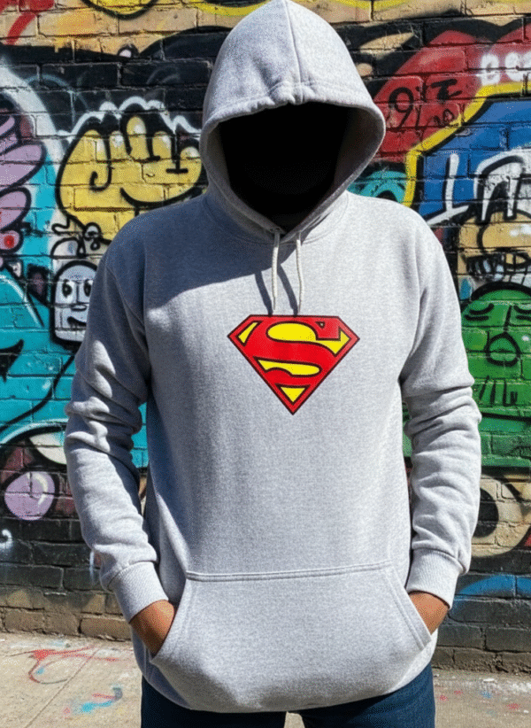 New Summer Collection Full Grey Hoodie SUPER MAN Printed For girl And Boys. Style: Comfortable, Fashion , Casual